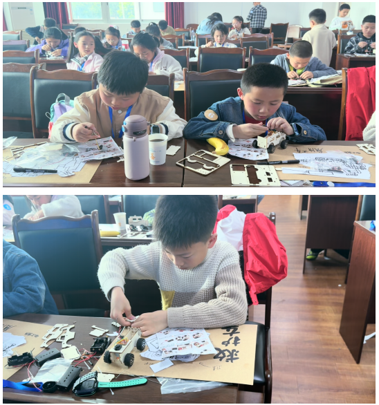 下午的活动精彩纷呈。美术老师生动讲解了汽车的百年演变史与经典设计理念,随后,孩子们拿起画笔,描绘心中理想的未来汽车——有的如飞船般前卫,有的似动物般灵动,天马行空的想象充满童趣。最令孩子们兴奋的莫过于手工环节,在老师的耐心指导下,每位小朋友都亲手拼装了一台属于自己的电动越野车。当一辆辆小车在教室里遥控飞驰时,欢呼声与笑声此起彼伏,将现场气氛推向高潮。